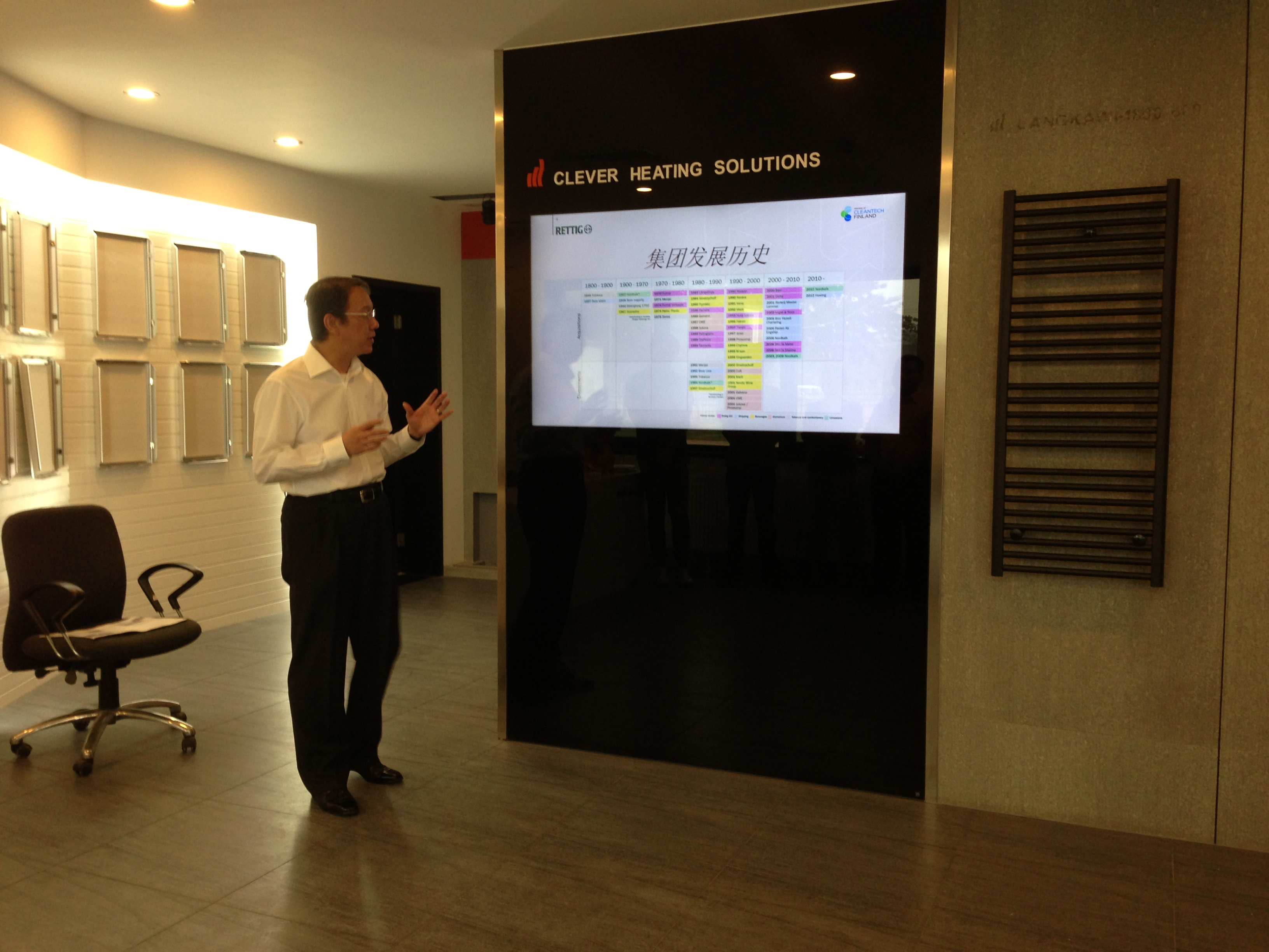 第二部分,總經(jīng)理張堯舜先生簡(jiǎn)要介紹了瑞特格集團(tuán)的發(fā)展歷史:瑞特格集團(tuán)------超過(guò)240年歷史與傳統(tǒng)的芬蘭家族企業(yè)。其旗下事業(yè)群有4300名優(yōu)秀員工分布在全球范圍內(nèi)的25個(gè)國(guó)家。2013年全集團(tuán)的營(yíng)收為9億7千4百萬(wàn)歐元。